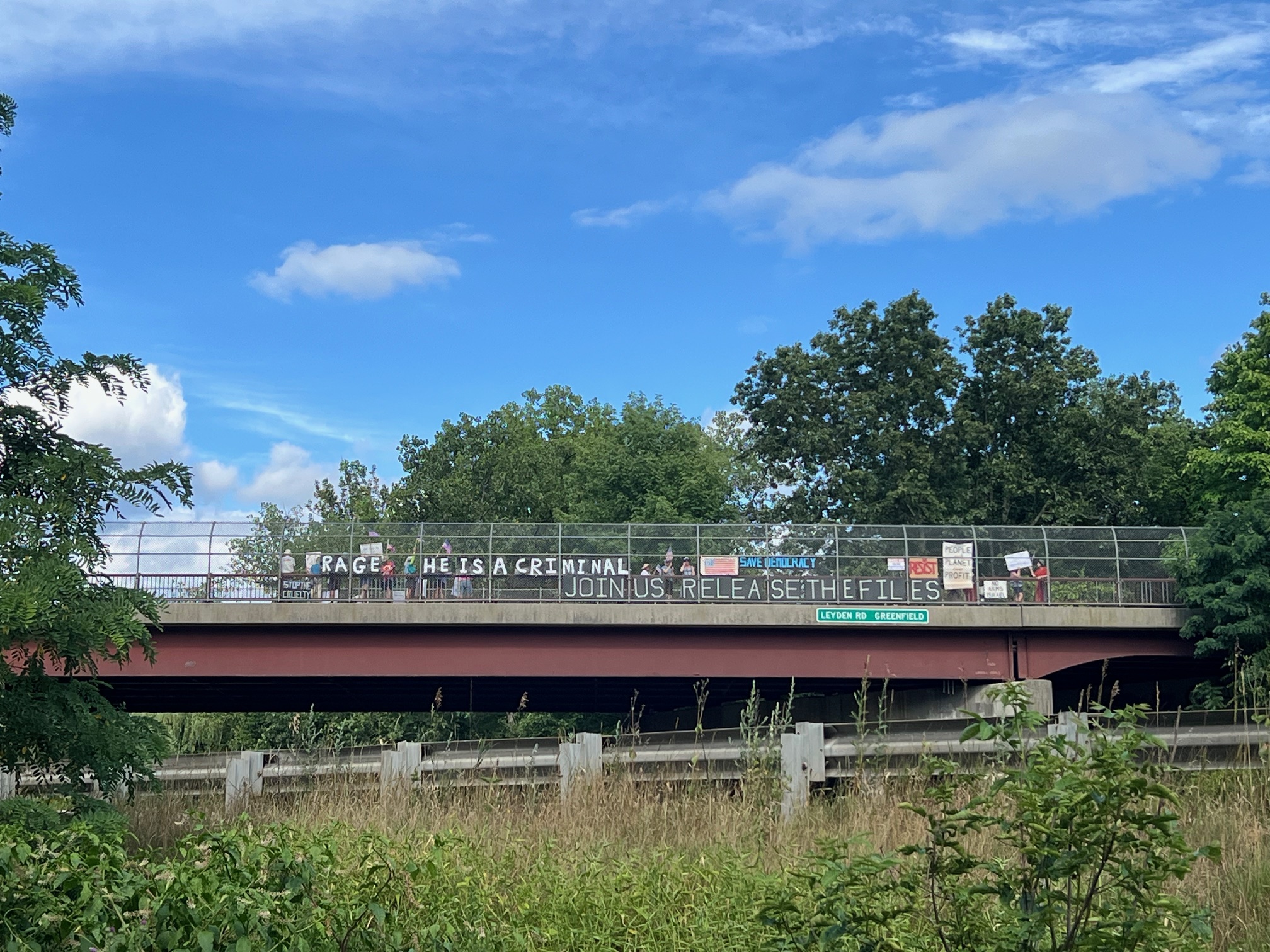 Once again, many people turned out for the tri-state (CT, MA, VT) overpass action. We got lots of appreciative honking from folks going under the overpasses and from those driving over the bridges. This visibility event demonstrates the support that we have among the general populace and fosters a good feeling of camaraderie among the participants. Next tri-state action will be on Friday, Aug., 29. Join us!